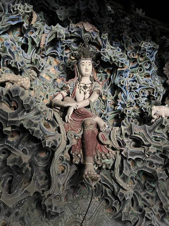 隆兴寺摩尼殿是梁思成眼中的“艺臻极品”。其中,最令人震撼的,无疑是被誉为“东方美神”的倒坐观音塑像。