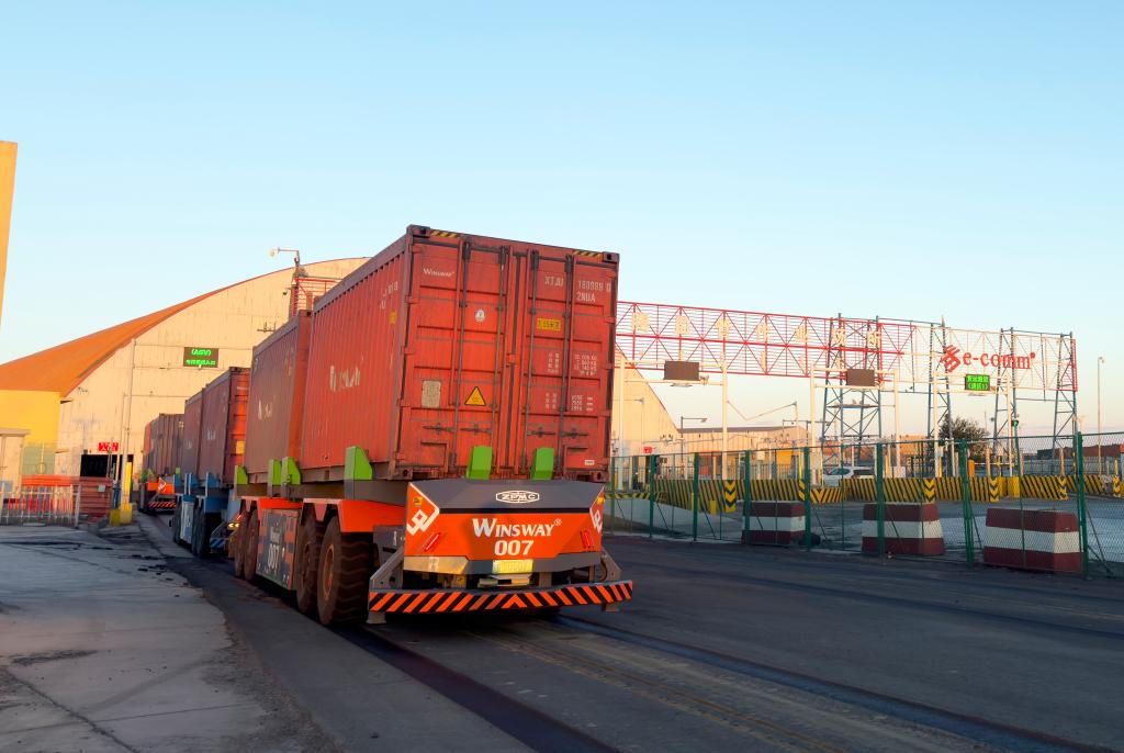 6月17日,在内蒙古甘其毛都口岸,自动导向车(AGV)在封闭公路上运行。新华社记者 李云平 摄
