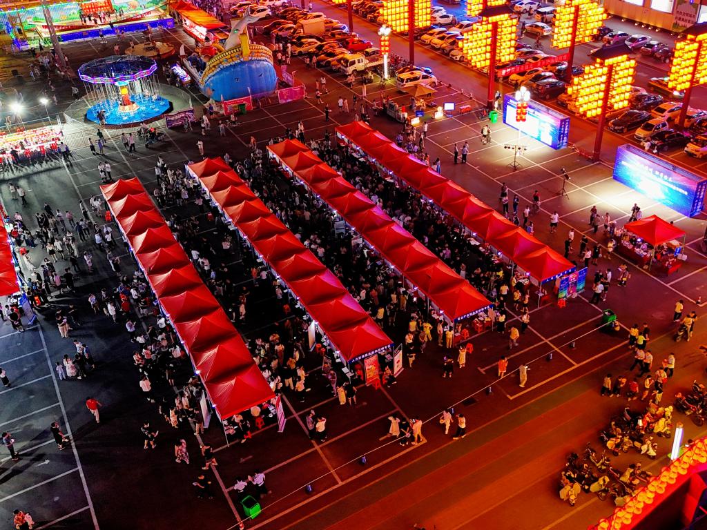 德州市在当地知名商圈举办人才夜市活动,吸引众多求职者和用人单位参与。(受访者供图)