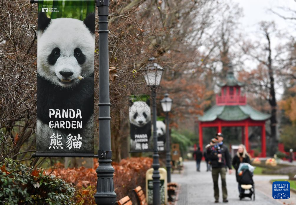 这是2023年12月14日在德国柏林动物园拍摄的大熊猫海报。 新华社记者 任鹏飞 摄