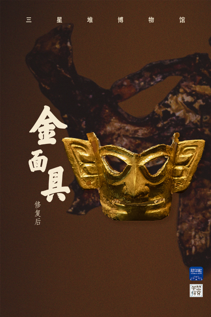 这是在三星堆博物馆文物保护与修复馆拍摄的修复后的金面具。