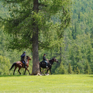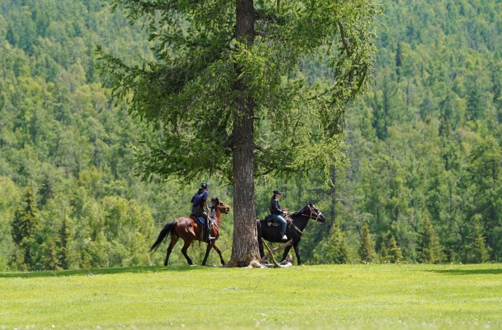 在新疆阿勒泰地区哈巴河县,游客在骑马。新华社记者 阿曼 摄