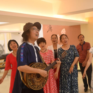 潘金英是合唱团一员,60岁的她很喜欢这里其乐融融的氛围。“住在蟠龙社区,我感到很快乐,因为这个地方有很多民族住在一起,能见识到不同文化。音乐就像一根纽带,把我们联系在一起。”潘金英说。