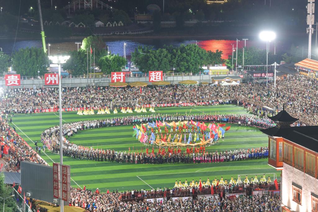 这是7月20日拍摄的2024年贵州“村超”总决赛文艺表演。新华社记者 杨文斌 摄