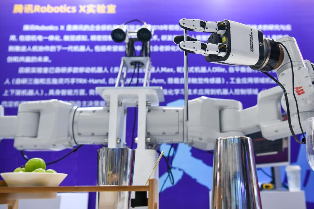 机器人一只手拿起一个杯子,另一只手拿起一根金属棒,在杯子里熟练地做着搅拌动作。做完后,机器人准确地把金属棒放回直径仅为8毫米的圆孔基座上,整套动作连贯、流畅。来自腾讯公司旗下实验室的机器人展示了当前灵巧手操作的精确程度,人工智能大模型的应用让人形机器人自主决策能力以及上肢的灵活性得到了大幅提升。