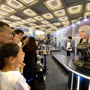 “君不见黄河之水天上来,奔流到海不复回……”身着运动衣的“男孩”——一款仿生人形机器人,开始滔滔不绝地背诵古诗《将进酒》。“男孩”旁边,几个挺拔靓丽的“姑娘”同台亮相,好像科幻电影里走出的人物。