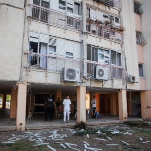 这是8月25日在以色列北部城市阿卡拍摄的遭袭建筑。新华社/基尼图片社