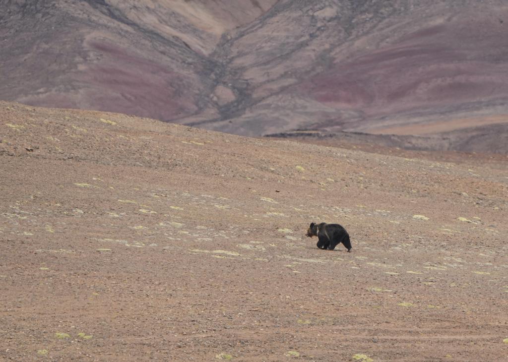 生活在羌塘草原上的熊(2024年6月13日摄)。