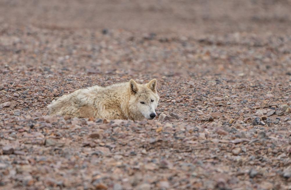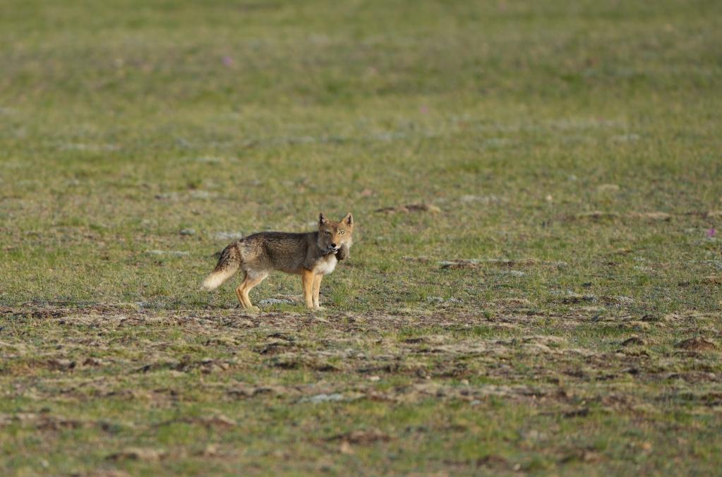 羌塘草原上的狼,随时准备对藏羚羊发动攻击(2024年6月13日摄)。