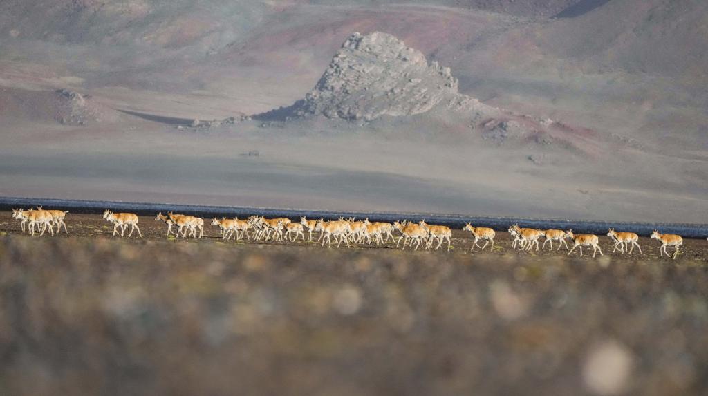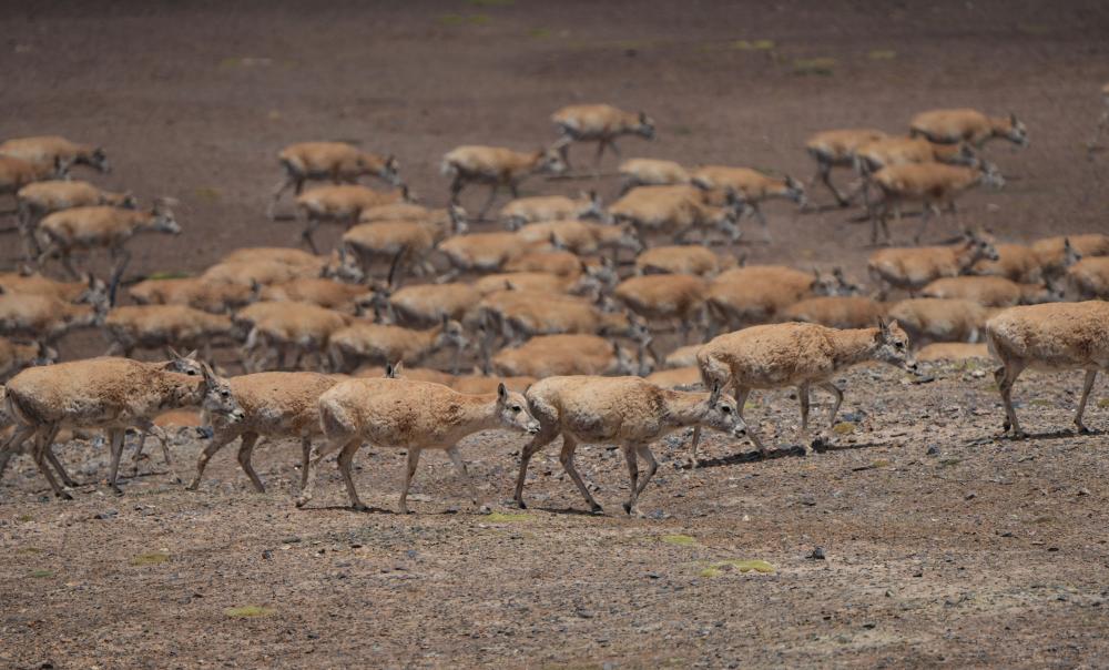 甜水河附近迁徙的藏羚羊(2024年6月14日摄)。