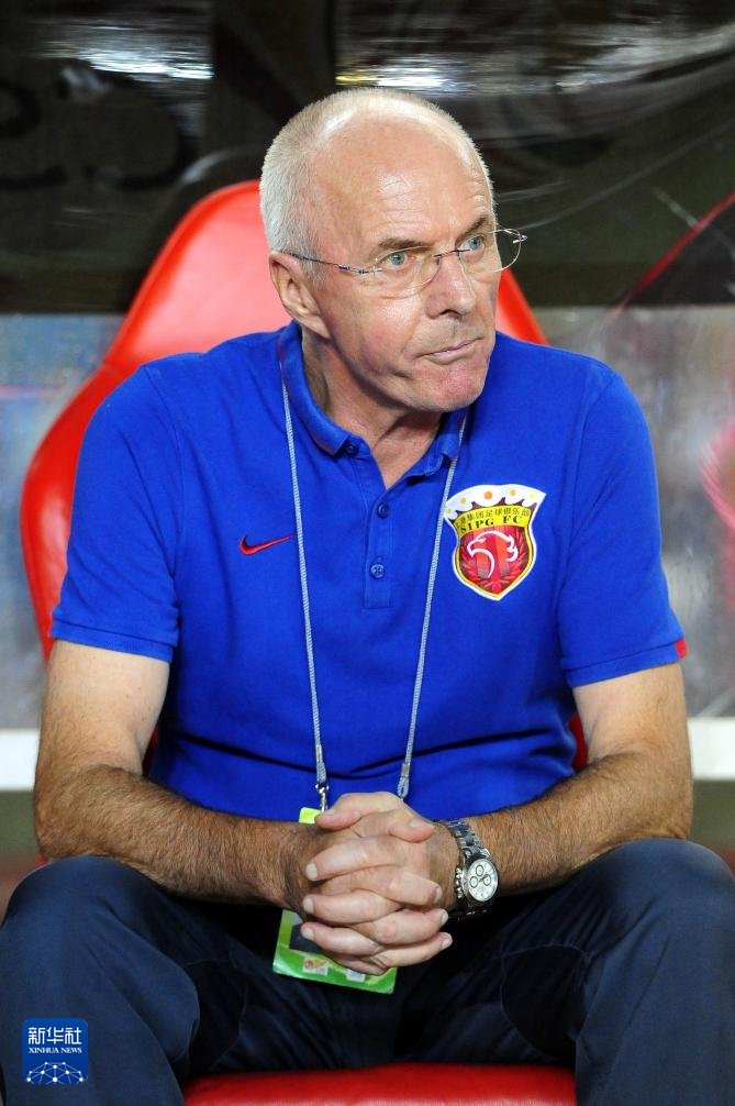 这是时任上海上港队主教练斯文-戈兰·埃里克森在2015赛季中超联赛第22轮河南建业队主场对阵上海上港队的比赛中(2015年8月12日摄)。新华社记者 李博 摄