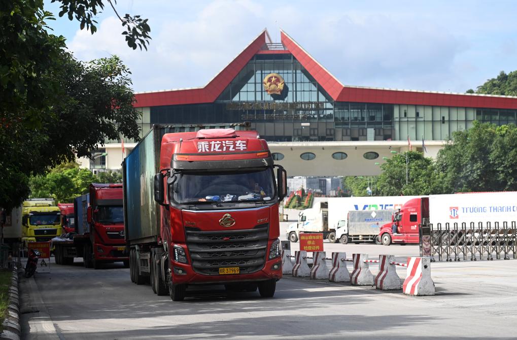 8月26日,车辆在广西凭祥市友谊关口岸行驶。新华社记者 陆波岸 摄