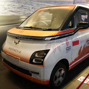 ↑ 2022年,五菱首款新能源全球车Air ev(右舵版)在印尼正式下线,并成为二十国集团(G20)领导人第十七次峰会官方用车。