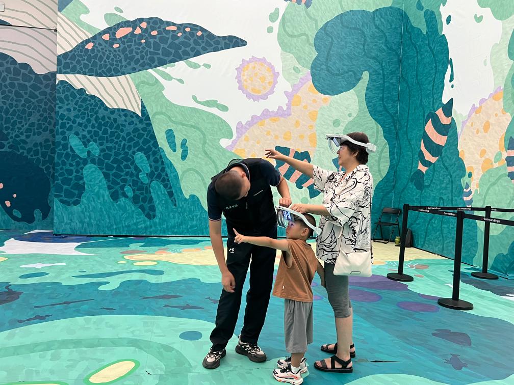 约6公里以外的天津美术馆,一场古典与现代的融合也正在发生。“美人鱼就在我眼前”“好神奇,我能‘碰到’章鱼的触角”……阵阵惊喜的赞叹声从“安徒生童话MR艺术展的展厅”传来。在这里,大人和孩子手牵着手,MR交互眼镜中,“虚拟泡泡”在空间中跳跃,观众们的脸上洋溢着兴奋和好奇,沉浸在奇幻的童话世界中。