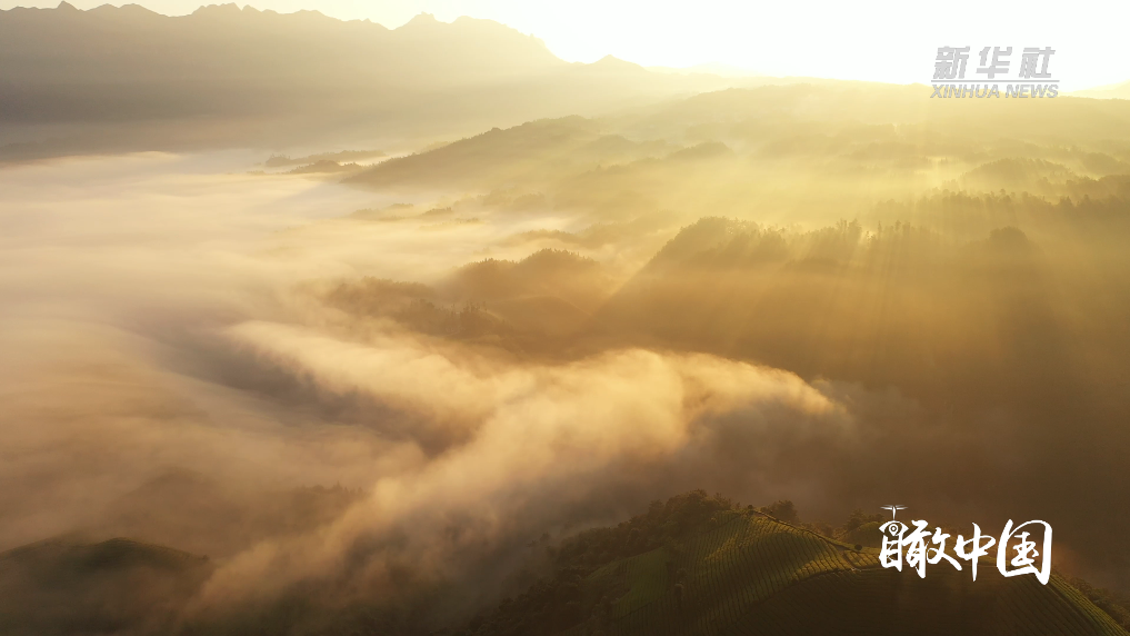 晨曦破晓,湖北省鹤峰县走马镇木耳山的天边渐渐泛起粉色云海。从远处眺望,粉色云海如同汹涌澎湃的潮水,从天边滚滚而来,向着茶山奔腾而去。云雾时而高高涌起,形成巨大的云山,仿佛是天空中悬浮的神秘岛屿;时而迅速散开,化作丝丝缕缕轻烟,缭绕在茶山之间。在粉色云海的映衬下,茶山显得格外壮美。