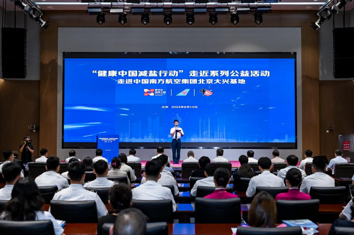 8月14日,由新华社品牌工作办公室联合中国盐业集团有限公司共同发起的“健康中国减盐行动”走近系列公益活动在北京大兴区中国南方航空集团北京大兴基地举办。本次活动旨在普及减盐知识,提升公众对盐与高血压关系的认识,推动健康低钠盐更大范围普及应用。