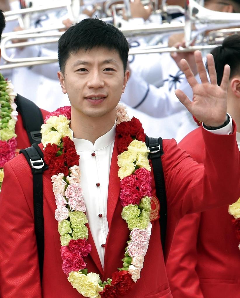 8月29日,乒乓球运动员马龙在欢迎仪式上。新华社记者 卢炳辉 摄