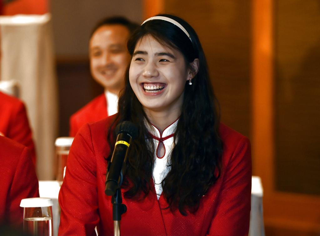 8月29日,游泳运动员张雨霏在媒体见面会上回答记者提问。新华社记者 卢炳辉 摄