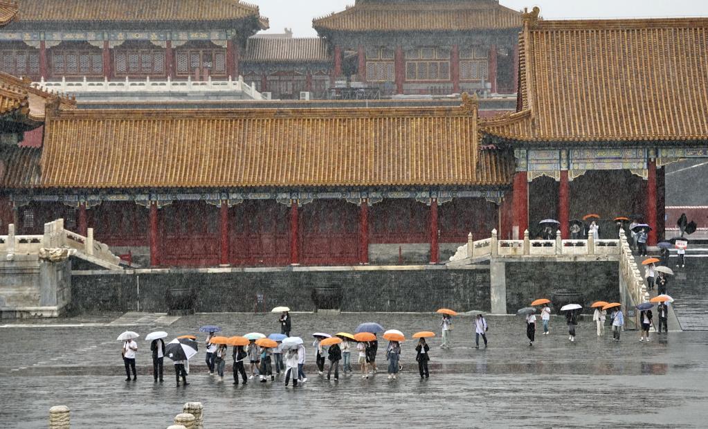 8月26日,参加第三十届海峡两岸大学生新闻营的师生在北京故宫博物院参观。新华社记者 李欣 摄