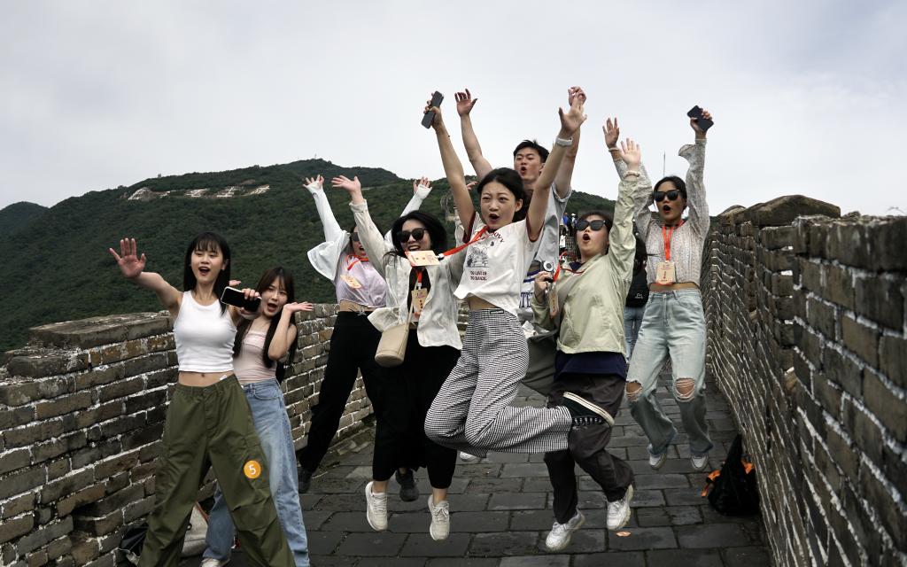 8月25日,参加第三十届海峡两岸大学生新闻营的师生们在北京慕田峪长城留影。新华社记者 李欣 摄