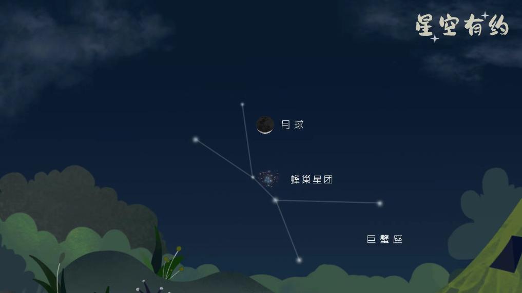 “在远离光污染的地方,如郊区、乡村等地,这两个天体更有机会被看到。”中国天文学会会员、天文科普专家修立鹏表示,感兴趣且能早起的公众面向东方低空,会看到一弯细细的残月斜挂在天幕之上。如果仔细观察,在残月正下方不远处,可见一团模糊的雾状小暗斑,隐约散发出青白色的光芒,这就是蜂巢星团。残月的亮度不是很高,与蜂巢星团的亮度十分匹配。