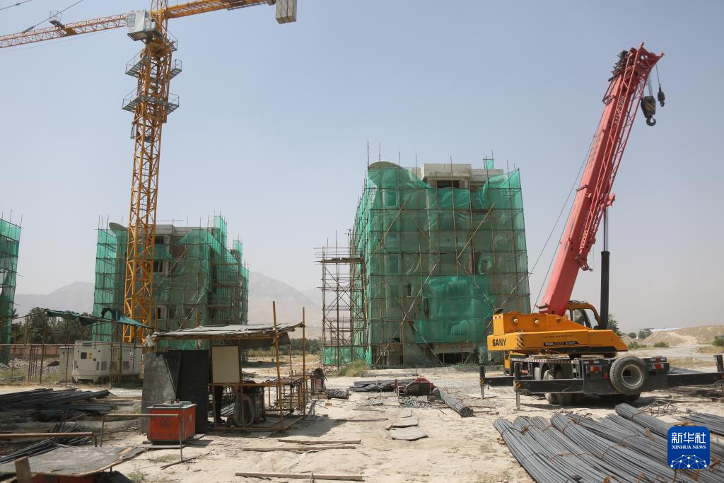 这是8月24日在阿富汗首都喀布尔拍摄的中国十九冶集团有限公司援建的住宅楼项目施工现场。新华社发(塞夫拉赫曼·萨菲摄)