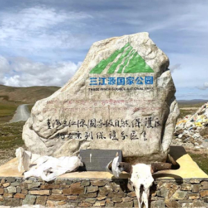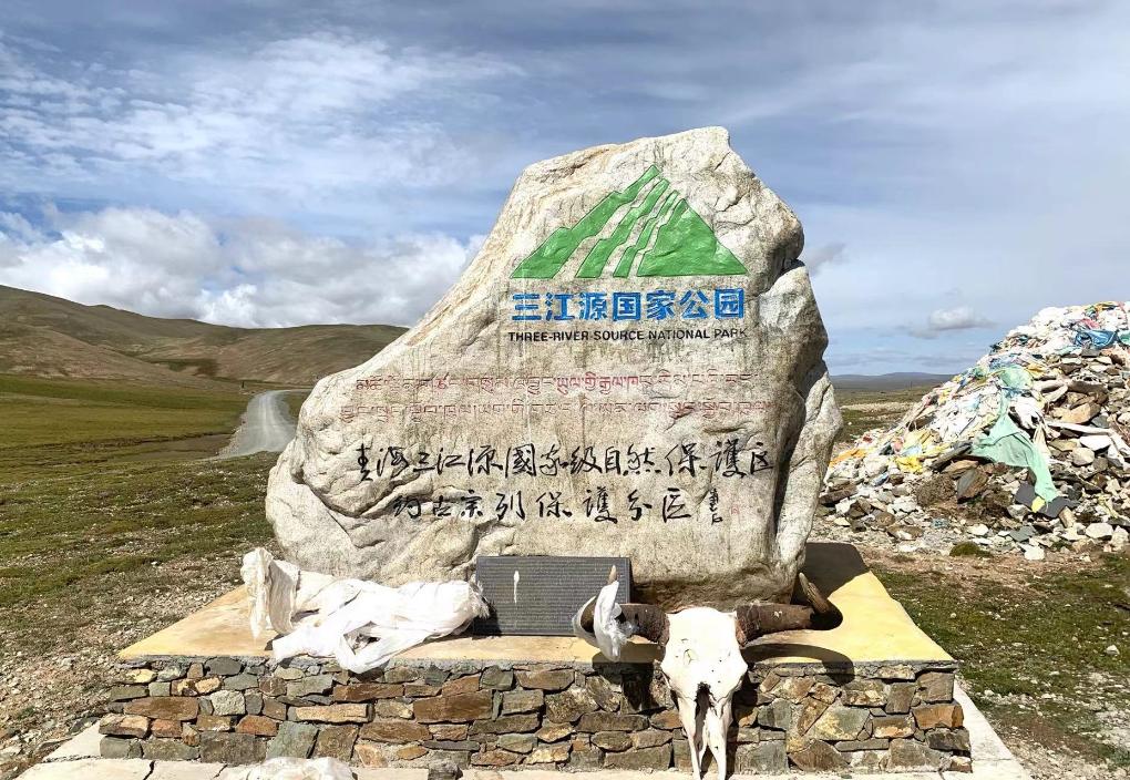 青海省玉树藏族自治州曲麻莱县境内的约古宗列保护分区石碑。新华社记者 李琳海 摄