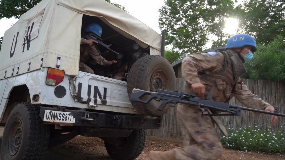 2022年7月27日,中国第八批赴南苏丹(朱巴)维和步兵营百人防暴队抵达预定区域,进行综合防卫演练。针对南苏丹社会安全问题及近期在刚果(金)东部地区发生的针对联合国刚果(金)稳定特派团的抗议示威活动,中国第八批赴南苏丹(朱巴)维和步兵营于日前组织UN HOUSE(联合国之家)综合防卫演练,以应对可能出现的难民涌入、营门遇袭、暴恐威胁等突发情况。