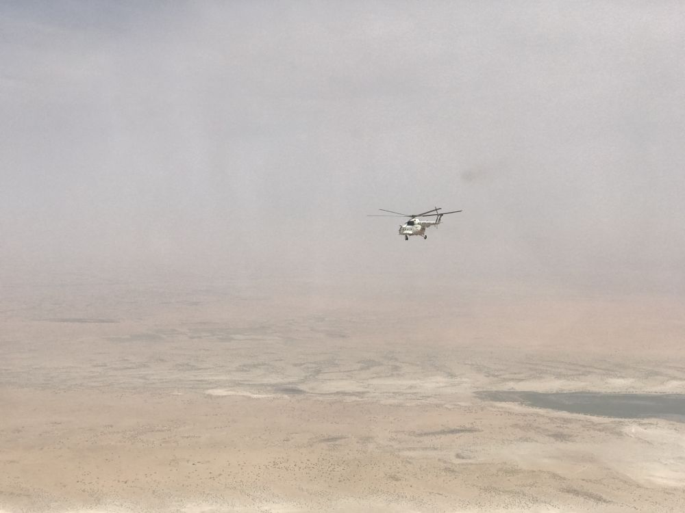 2017年8月8日,中国首支维和直升机分队直升机飞行在苏丹达尔富尔任务区上空。