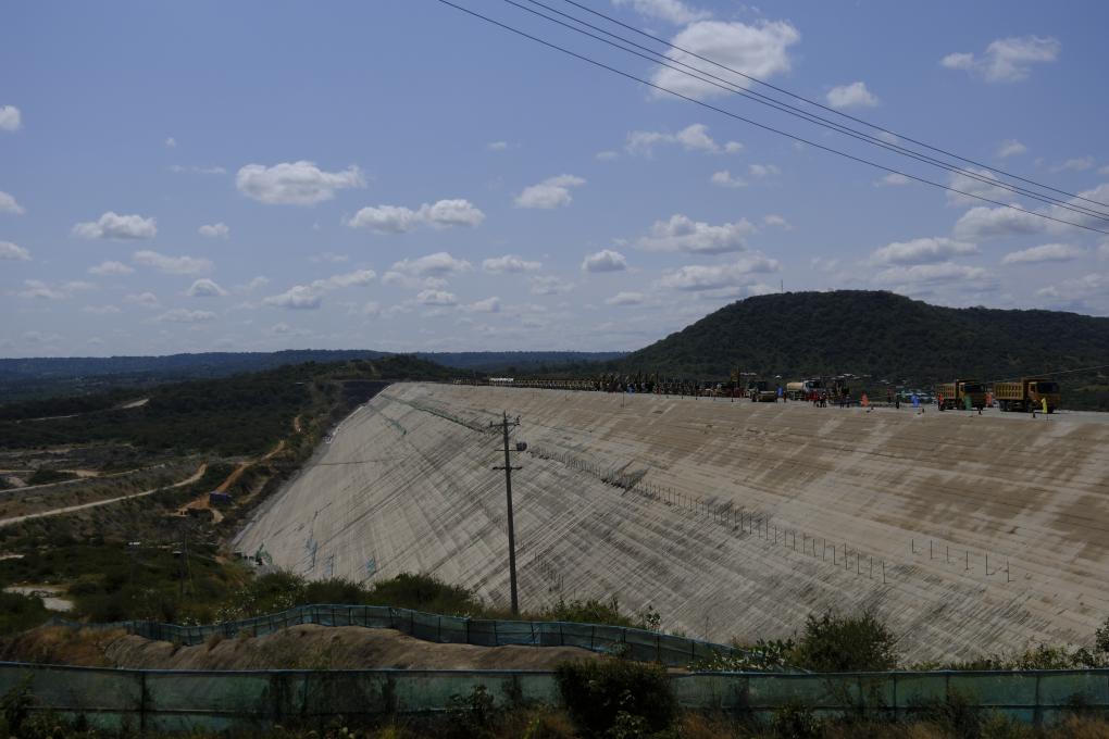 这是6月18日在肯尼亚南部马库埃尼拍摄的由中企承建的斯瓦克大坝。(新华社记者林晶摄)