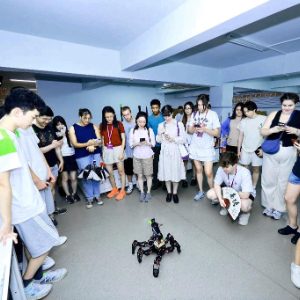8月25日,中外青年在浙江杭州观看机器人表演。新华社发(清华大学供图)