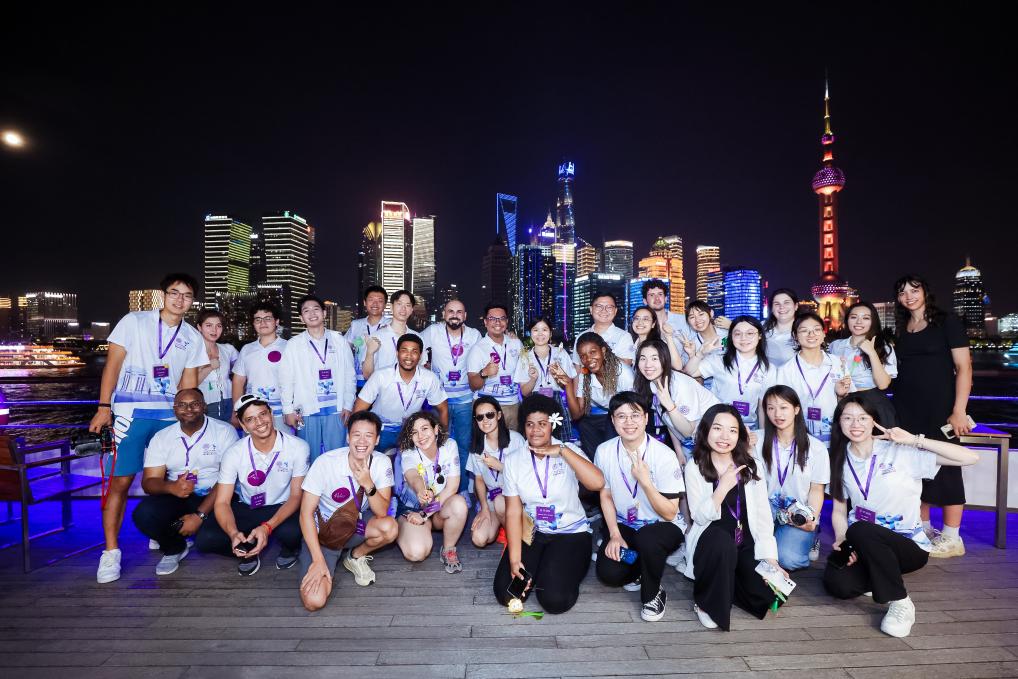 8月21日,中外青年在上海参观时合影留念。新华社发(清华大学供图)