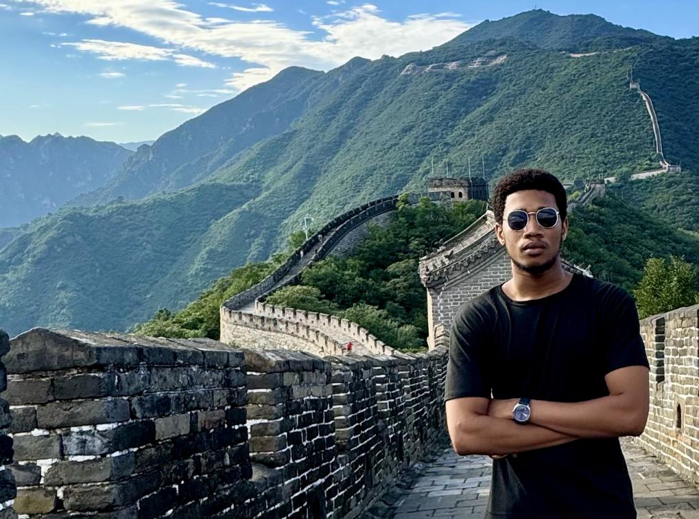 8月28日,尼日利亚青年阿米尔·阿希姆在慕田峪长城留影。新华社发(清华大学供图)