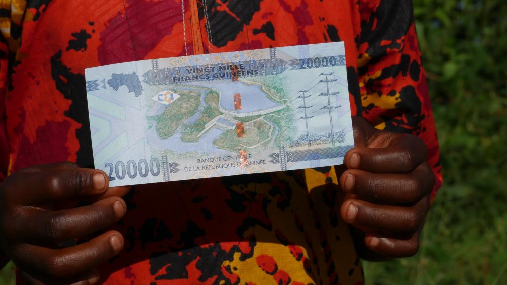 水电站的实际效果图被印在面值2万几内亚法郎纸币背面。2023年9月7日摄。新华社记者郑扬子摄
