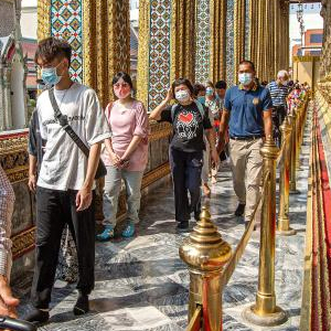 2023年2月7日,中国旅游团游客在泰国曼谷大王宫景区游览。新华社记者王腾摄