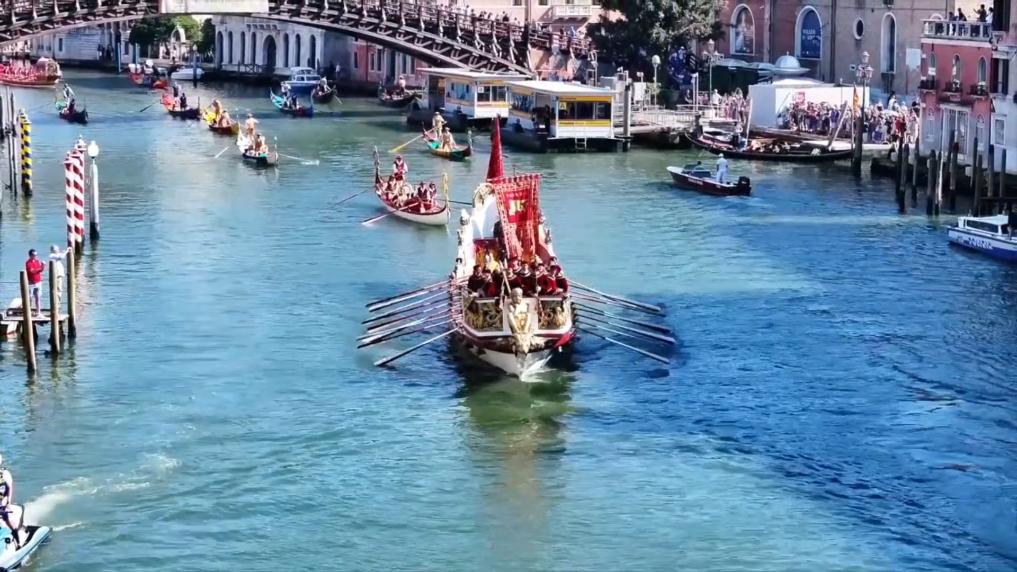 当地时间9月1日,威尼斯传统赛船节在贯穿威尼斯城的大运河上开赛。中国苏州作为威尼斯的友好城市,也受邀参加赛船节节日游行,15名中国队员代表苏州出征,将中国龙舟“划进”意大利“水城”。