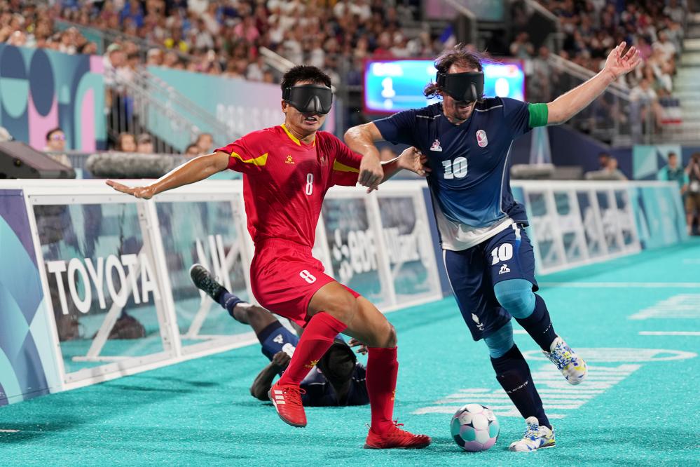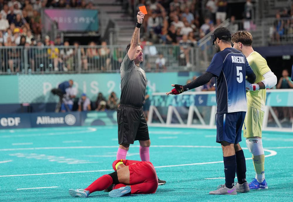 一场巴黎残奥会盲人足球小组赛