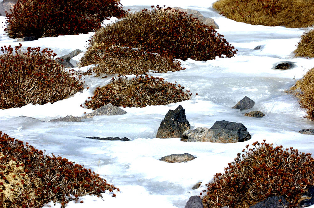 这些看似卑微而不起眼的生命,却以无比顽强的姿态,深深扎根于这片贫瘠而荒凉的高原之地。它们不畏严寒酷暑,不惧风沙侵袭,用自己微小而坚韧的存在,为高原生态系统构建出了一片独特的基底。这些垫状植物仿佛是大自然的守护者,它们默默地守护着每一寸土地的希望,为高原上的其他生物提供了宝贵的庇护与滋养。在这片看似荒芜的土地上,垫状植物用自己的生命诠释着坚韧与希望的力量,书写着生命的奇迹。