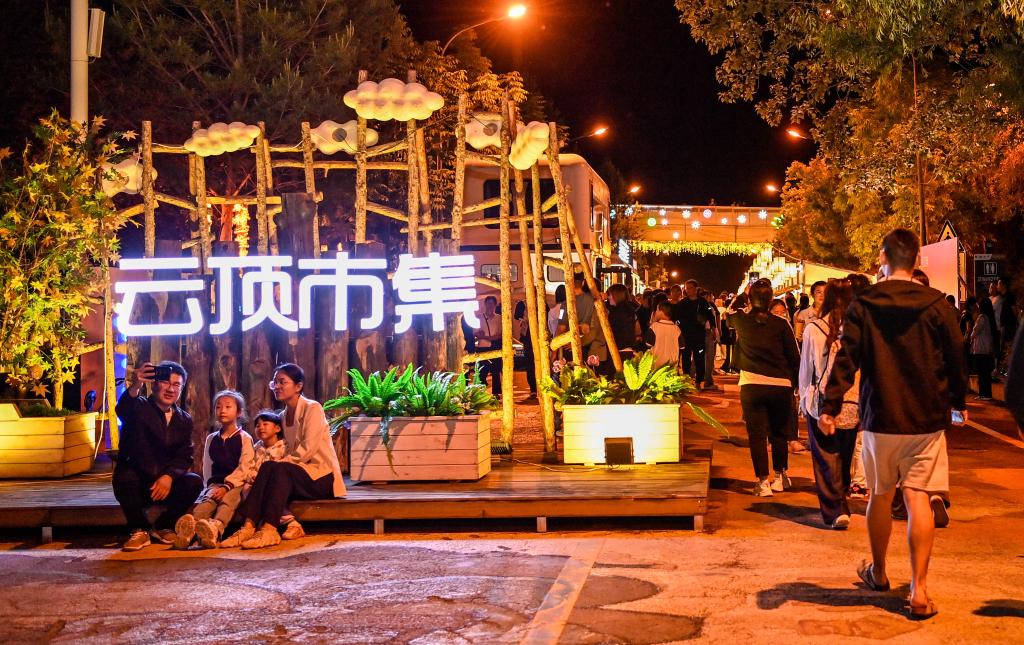 6月13日,游客在二道白河镇的云顶市集游玩。新华社记者颜麟蕴 摄