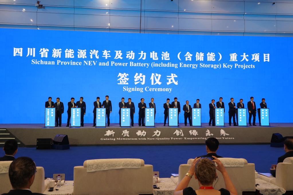 9月1日,2024世界动力电池大会上的四川省新能源汽车及动力电池(含储能)重大项目签约仪式。新华社记者 唐文豪 摄