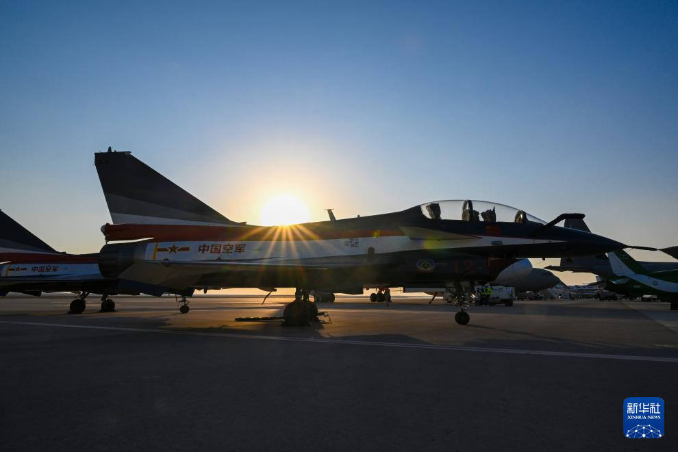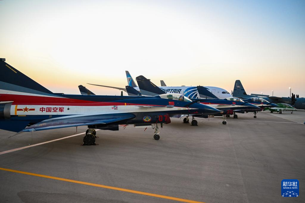 9月3日,在埃及阿拉曼开幕的首届埃及航展上,中国空军八一飞行表演队歼-10表演机进行静态展示。新华社发(周雪峰 摄)