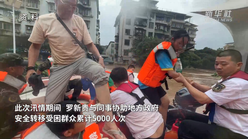 洪水迅猛,小区内情况复杂,罗新贵与主要由党员组成的救援队穿梭在洪水中,转运应急物资、转运通信设备、转移受困群众……此次汛情期间,罗新贵与同事协助地方政府安全转移受困群众累计5000人次。