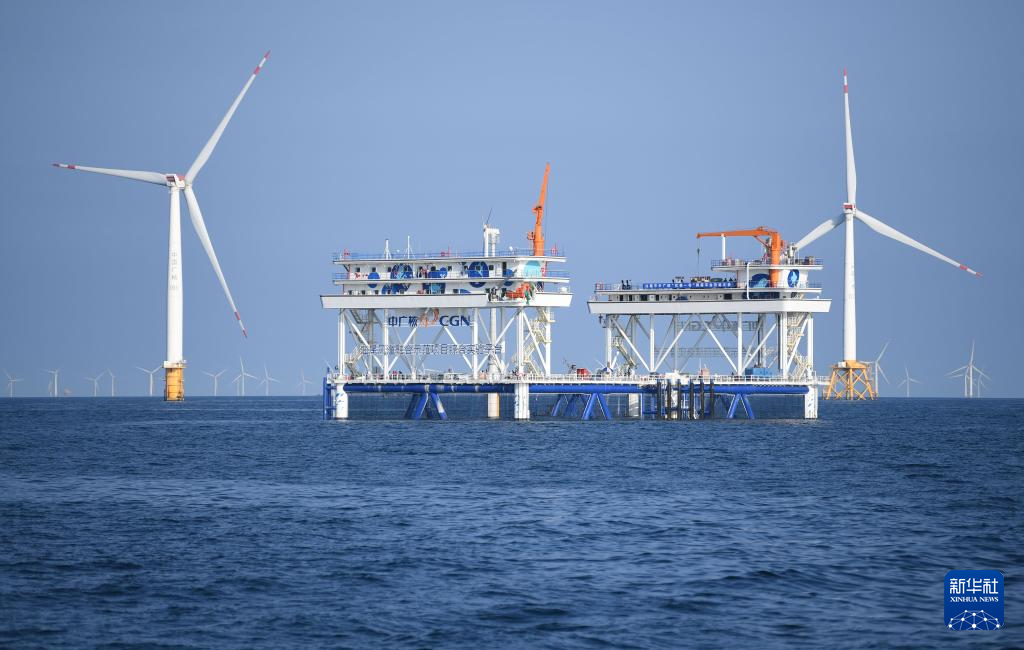 这是9月2日拍摄的中广核“伏羲一号”风渔融合网箱平台。新华社记者 邓华 摄