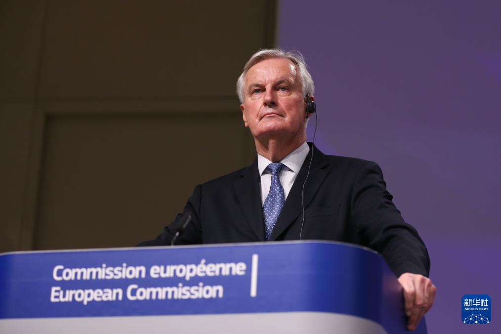 这是2020年12月24日,米歇尔·巴尼耶在比利时布鲁塞尔的欧盟委员会总部出席新闻发布会时的资料照片。 新华社记者 郑焕松 摄