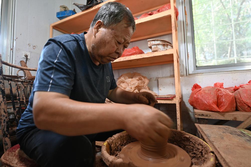 “当时,经过手揉的泥料,在拉坯成形后,总是开裂、变形。”阎建林说,经过多次试验,他发现用脚踩揉的方式,可以有效排出泥料中的气泡,使泥料中的水分进一步均匀,解决了开裂、变形的问题。