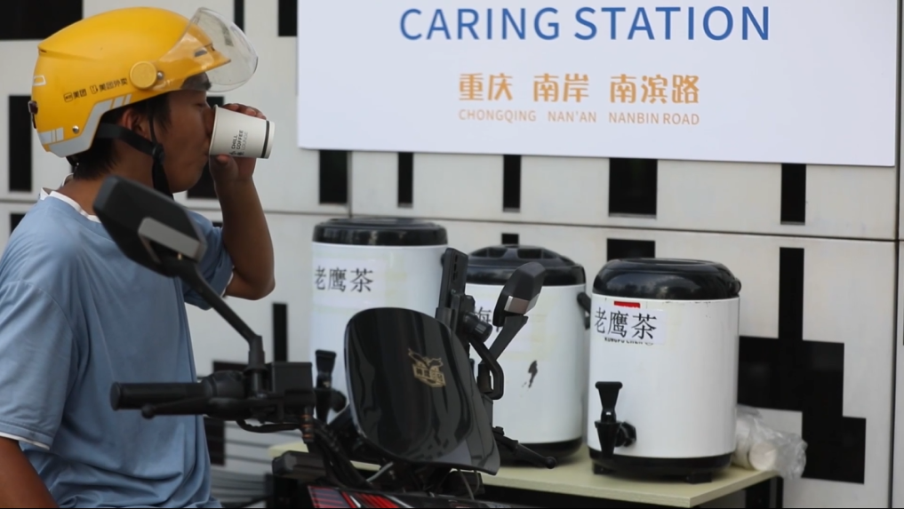 重庆南岸区南滨路建设发展中心在南滨路沿线设置了多个“劳动者港湾”。爱心企业、商家还有协会,奉献爱心,提供物资,为一线工作者送关怀、送清凉。