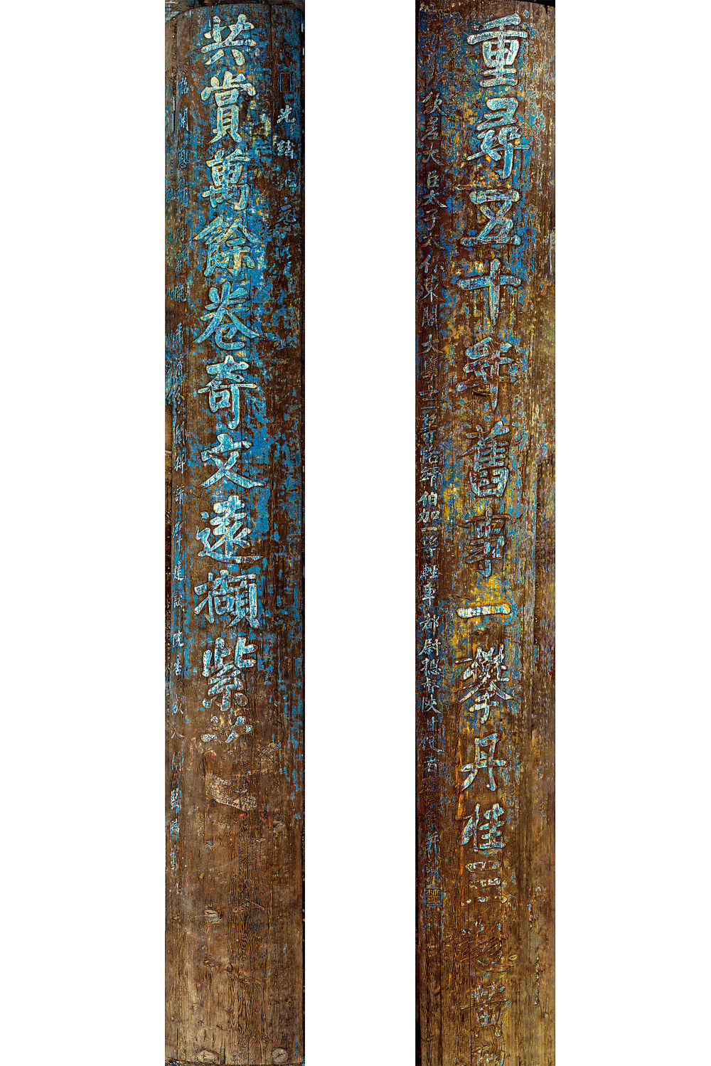 这是左宗棠自撰自写的甘肃贡院门口的木质长联。(甘肃科举博物馆供图)
