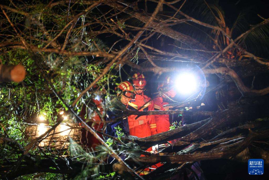 9月7日凌晨,消防队员在铺前镇开展道路清障工作。新华社记者张丽芸 摄