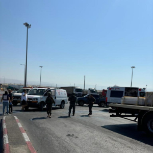 9月8日,以色列士兵和急救人员在艾伦比桥陆路口岸的枪击事件现场工作。新华社发(以色列医疗急救部门供图)