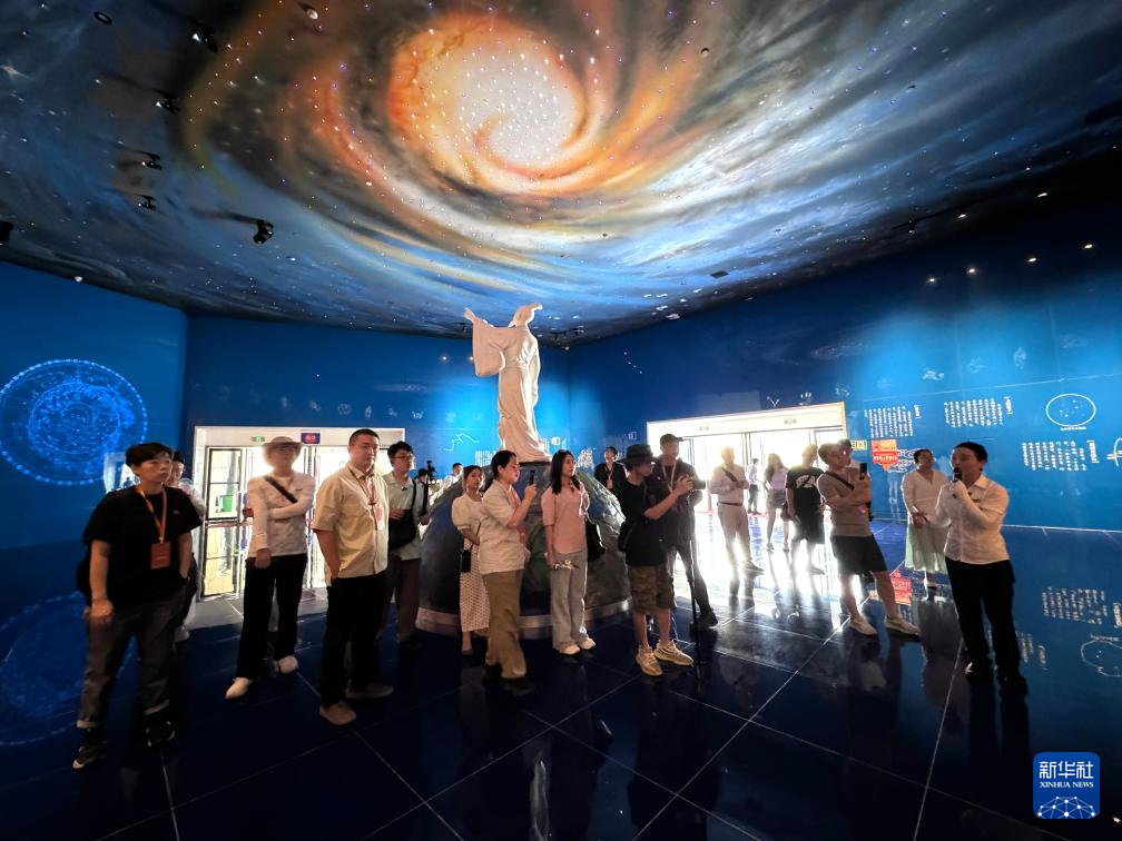9月7日,台湾青年在贵州省黔南布依族苗族自治州参观平塘国际天文体验馆。新华社记者 周宣妮 摄